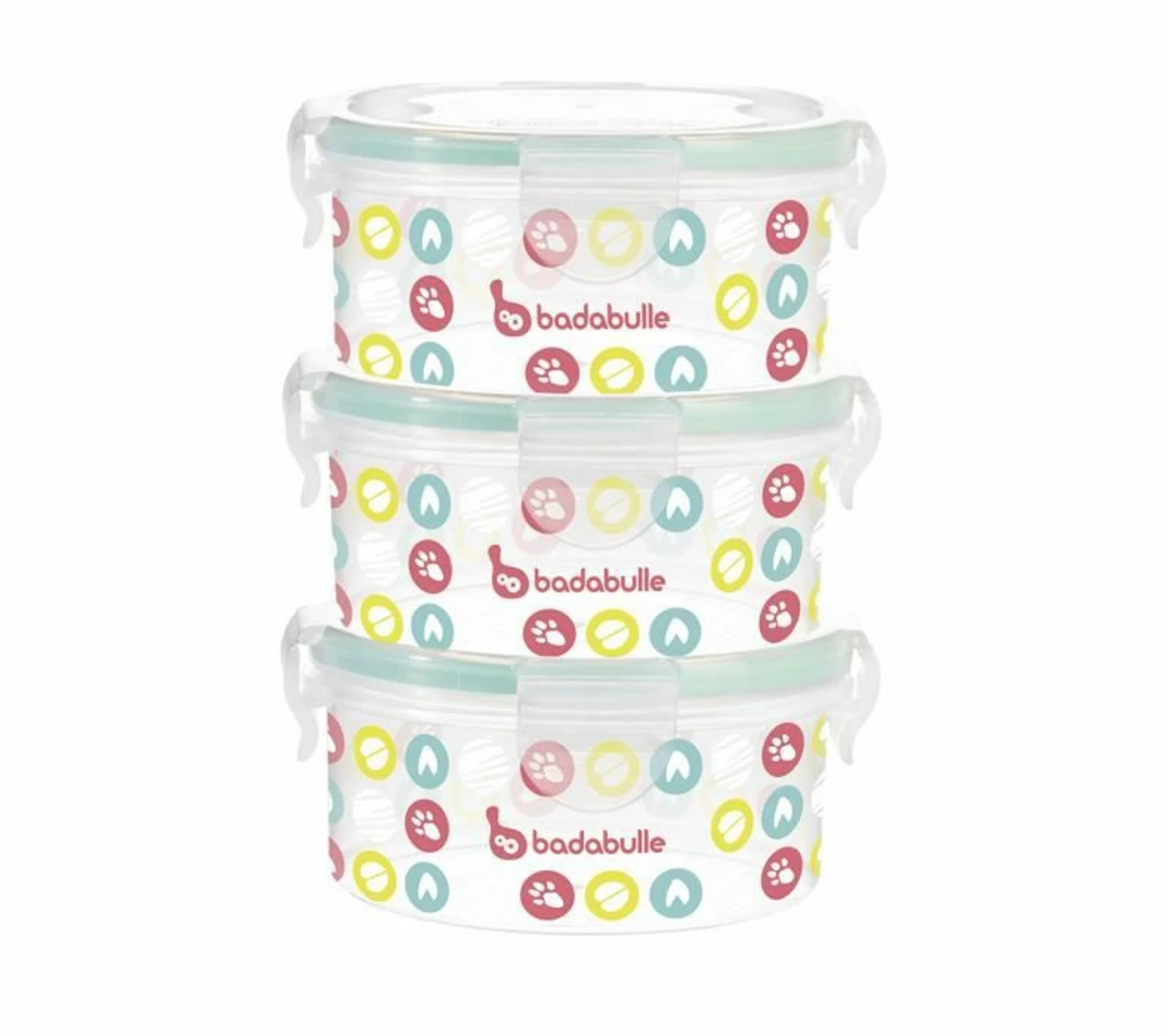 Pratique pour conserver et transporter les aliments de bébé voici un lot de 3 contenants conçus par badabulle ! Ils offrent une contenance de 3 x 300 ml. Ils permettent la conservation des repas maison au réfrigérateur ou au congélateur, et ils passent sans problème au micro-ondes…