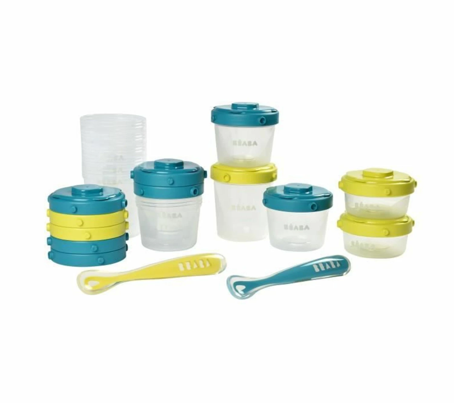 Gamme de portions clip pour conserver, les repas de bébés. Empilables et emboitables elles facilitent le rangement et le stockage au réfrigérateur et congélateur. Les couvercles sont également empilables et sont compatibles avec toutes les tailles de portions clip. Elles sont 100% hermétiques grâce au pas de vis du couvercle, permettant ainsi de conserver des liquides comme le lait maternel.