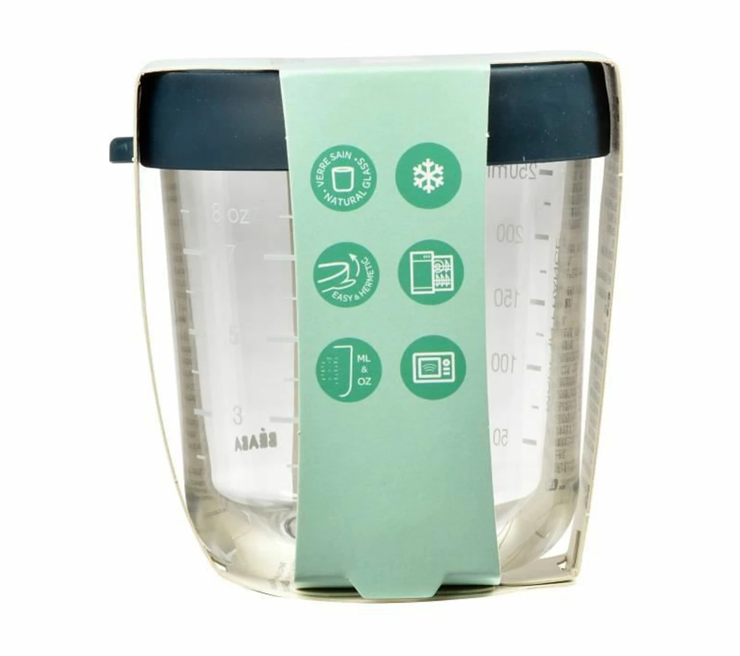 Pots de conservation en verre de qualité supérieure. Verre extra-résistant – couvercle souple facile a clipper : fermeture hermétique pour préserver les saveurs et aromes. – graduation visible en ml/oz : témoin de dosage.