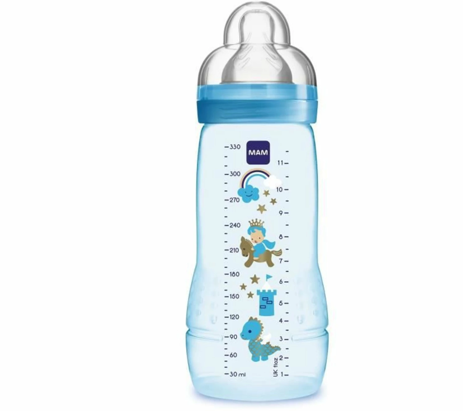 Mam biberon easy active 2eme âge – tétine ultra-douce brevetée, reconnue instinctivement par bébé – col large pour un remplissage et un nettoyage facile – graduation adaptée aux mesures de lait – sans bisphénol a – a partir de 6 mois – tétine débit x