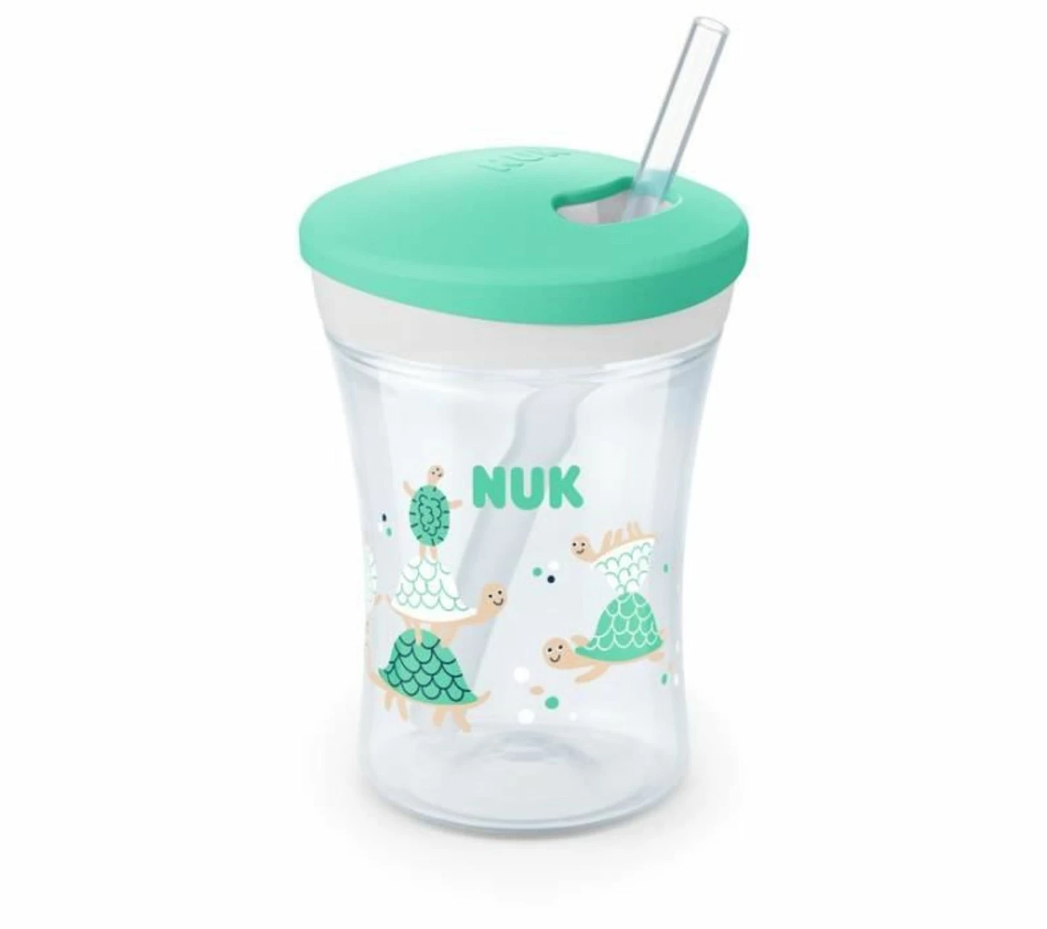 Pret a apprendre a boire et a passer a l’action, la gobelet plastique nuk action cup pour bambins dotée d’une paille a été conçue pour les enfants en mouvement. Dotée d’une paille flexible qui disparaît en vissant le capuchon, elle est douce pour les gencives de votre enfant et facile a nettoyer. La tasse est aussi 100 % étanche grce a une valve intégrée qui empeche le liquide de couler lorsque la succion s’arrete. De, plus, la tasse nuk antifuite est en plastique de haute qualité sans bpa, elle passe au lave-vaisselle, son assemblage et son nettoyage sont faciles. La forme galbée de la paille permet aux jeunes enfants de la tenir facilement pour les accompagner durant les grandes et les petites aventures. Destinée aux enfants gés de 12 mois et plus.
