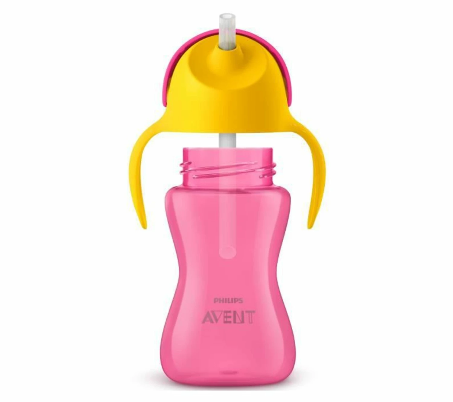 A l’unité – tasse a paille crete dragon – 300ml – 12 mois+ – rose/jaune : paille douce et flexible – ouverture a clapet anti fuites – facile a assembler et a nettoyer